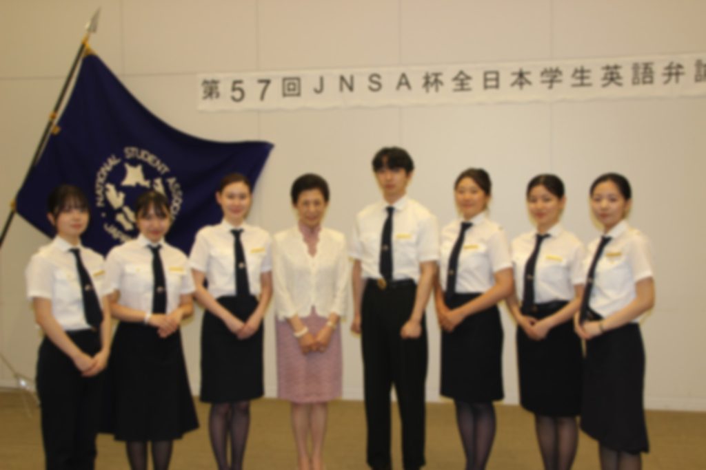 第57回JNSA杯全日本学生英語弁論大会 by admin · 公開済み 2025年7月21日 · 更新済み 2025年10月30日 高円宮妃久子 のご臨席を仰ぎ、7月6日 (日)、 読売新聞東京本社会議室にお いて第57回JNSA杯全日本学生英語弁論大会が開催されました。本年度は本部委員 31名が予選に挑み、上位 10名が決勝へと進出、そのうち7名が見事入賞を果たしました。今回の大会では、最近のトレンドである人工知能などの社会的関心の高いテーマから、日常生活での気づきや家族への想いまで、創意に富んだ内容が発表され、出場者一人ひとりの個性と情熱が混じり合う、印象深い舞台となりました。本部委員の成長と新たな意欲を強く感じさせる、有意義で実りある大会となりました。入賞者は以下の通りです。1位藤咲慶應義塾大学2位菊池上智大学3位髙橋(凜)東京農工大学4位太宰法政大学5位長谷川早稲田大学6位鈴木早稲田大学7位杉本津田塾大学(文責:三森) シェアする